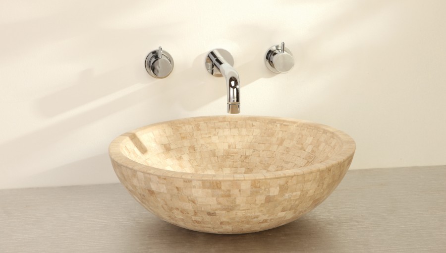 This elegant round design is skillfully handfinished in a Spanish travertine mosaic. Each mosaic stone is individually applied to both the inside and outside of the bowl taking over three days to complete the process producing a stunning effect. Suitable for use with deck or wall mounted taps.