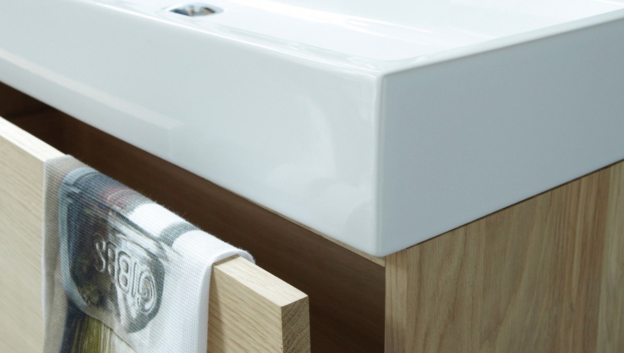 The clean lines of this wall hung range are ideally suited to more contemporary bathrooms. Available in 3 sizes, Basic features a ‘touch’ drawer opening and closing system. These solid oak units, which can be ordered in a choice of 9 finishes, are supplied with either a white or matt black ceramic basin suitable for use with either deck or wall mounted taps.