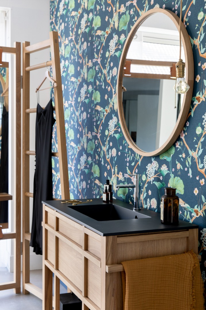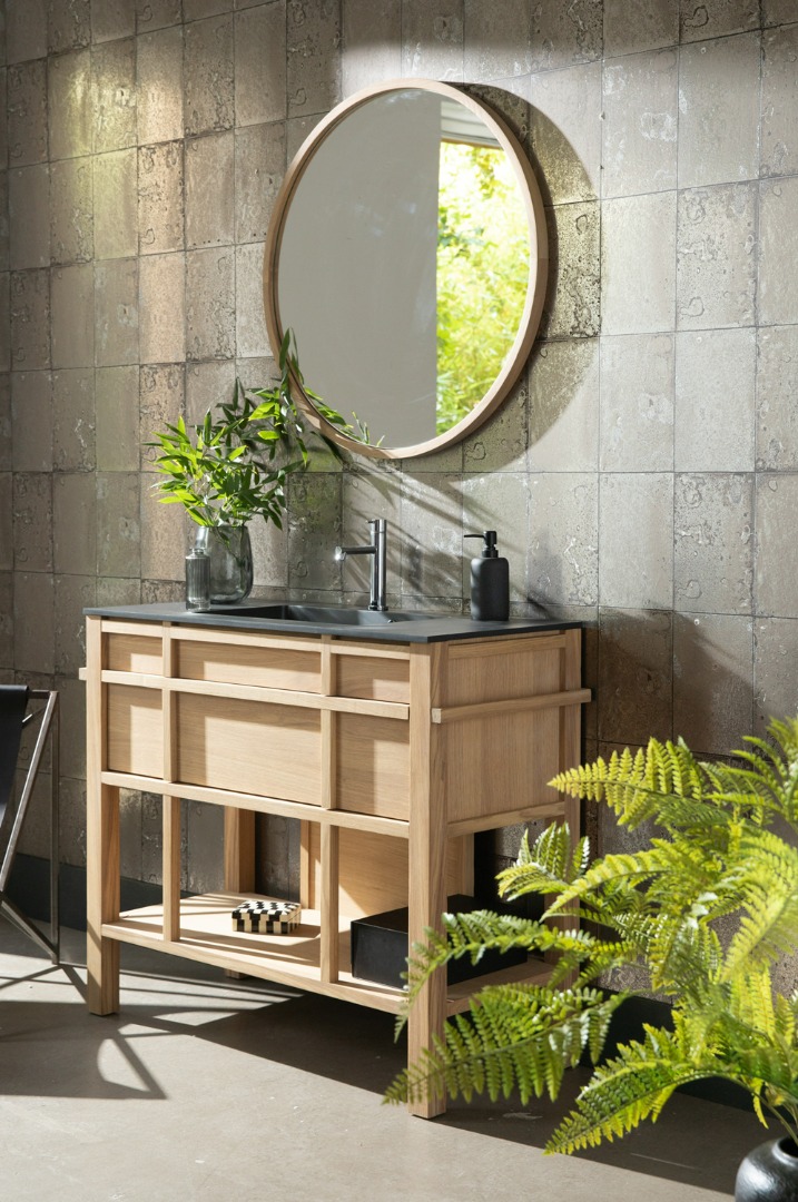 Crafted from solid oak Carpenter is available in 9 finishes and 3 sizes. Each size features a single drawer with Blum soft close drawer runners and open storage below. There is the option of either a white ceramic basin or choice of matt white and matt black solid surface basins. Alternatively, either an oak or stone countertop can be supplied for use with a countertop basin.