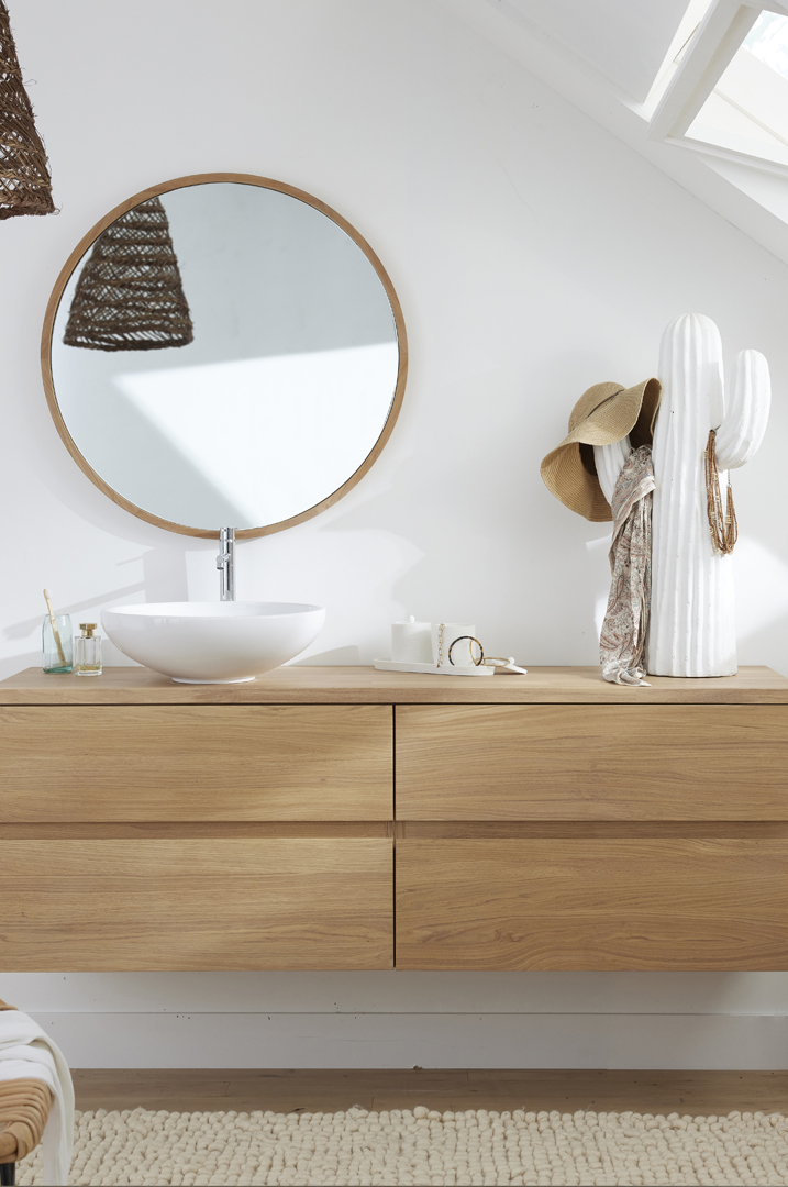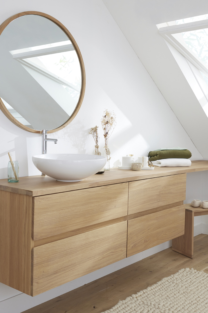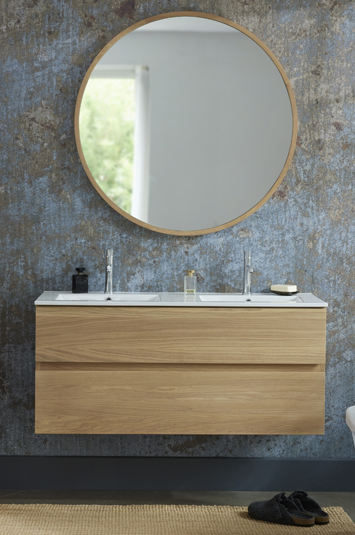 This entry level 2 drawer solid oak basin unit is available in 3 sizes only in a natural oil finish. The 2 drawer unit has a depth of 46cm ideal for smaller bathrooms. It also features soft close drawer runners and there is the option of either ceramic or solid surface basins as shown. Alternatively, an oak, stone or ceramic countertop is available for use with a countertop basin.