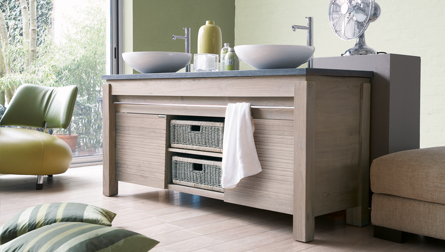 A further development of this classic design is now available with a choice of 5 door designs in 4 sizes of single and double basin units in 9 finishes. There is still the option of seagrass or black rattan baskets together with a choice of solid oak or four stone finishes of countertops.