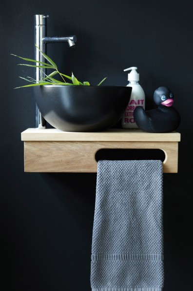 Wall mounted basin unit with black basin (0004nm)