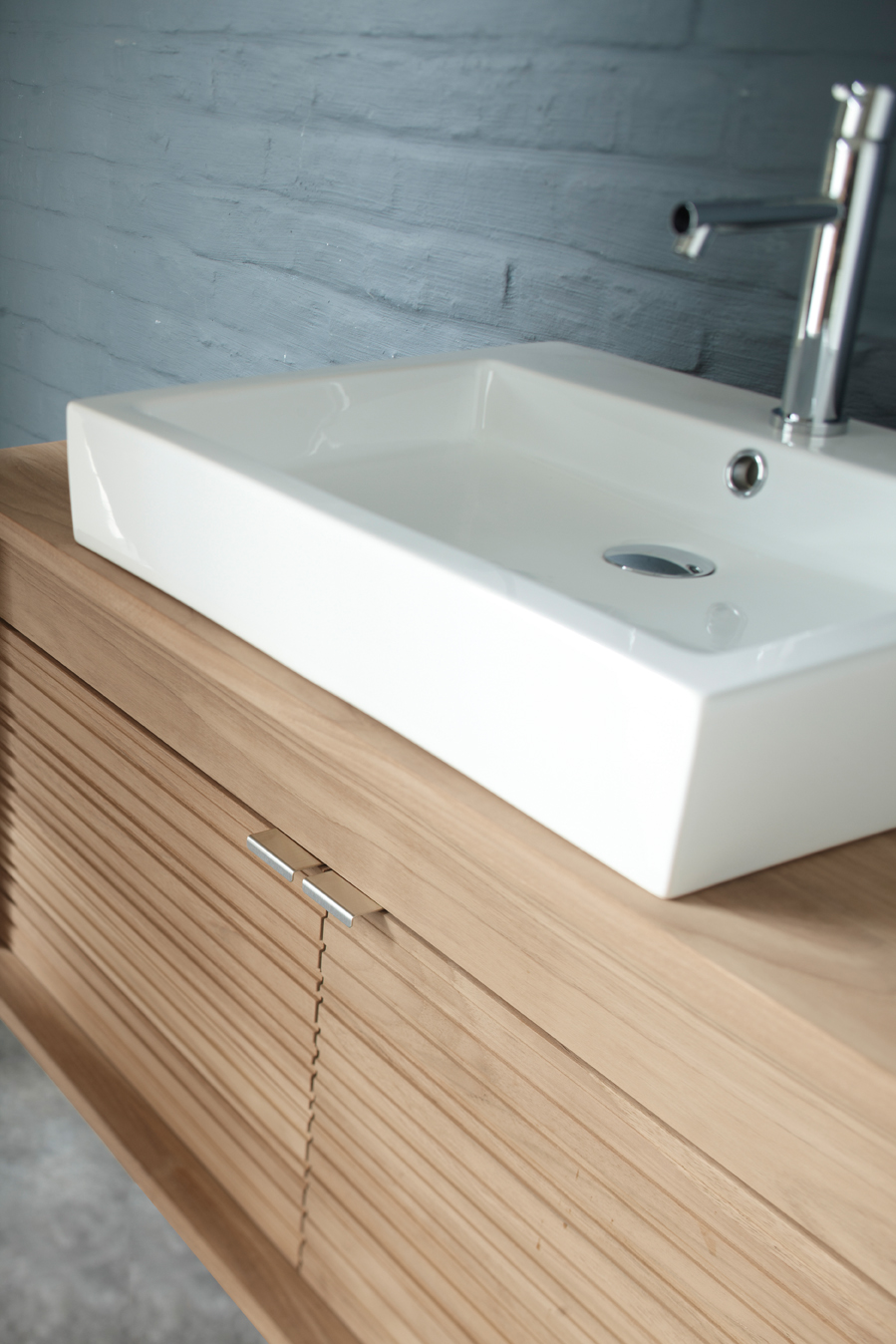 A versatile collection of single and double wall hung basin units, available in five different sizes and a choice of six different door or drawer designs. Optional drawer storage units with a soft close action complete the collection together with a wide selection of teak framed mirrors and accessories.