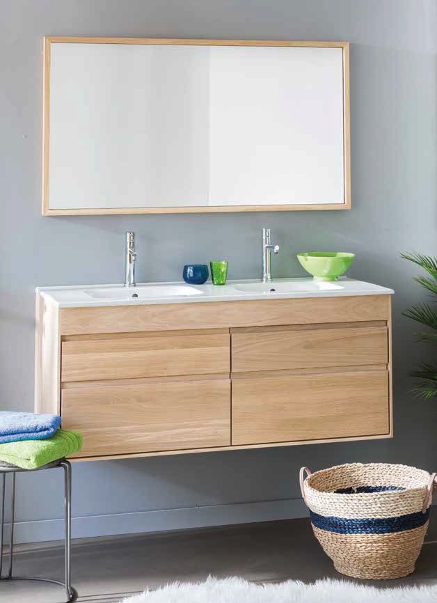 Basin unit with 4 drawers and double ceramic basin with 2 tapholes