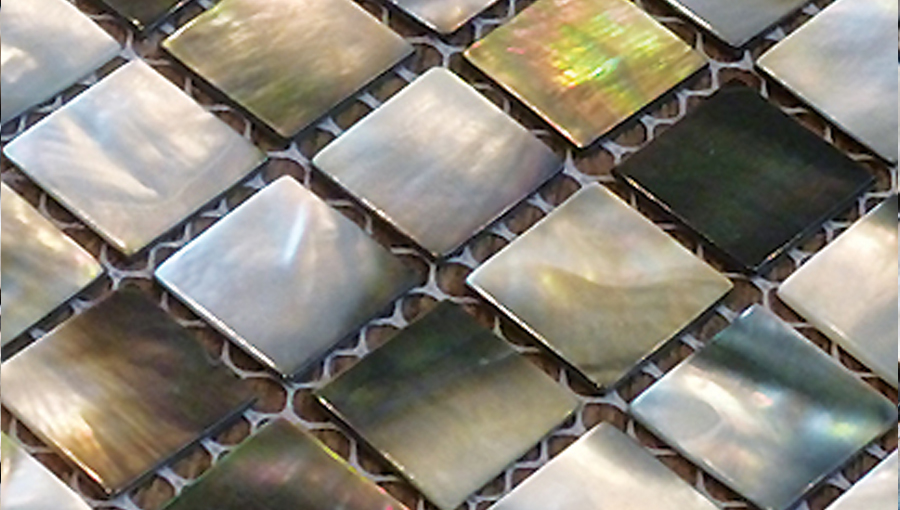 Farmed from freshwater shellfish, these tiles are 100% sustainable. The individual mother of pearl tiles are applied to a mesh sheet, creating a distinctive look, either as a feature with other tiles or for a complete area. As they are a natural product colours may vary.
