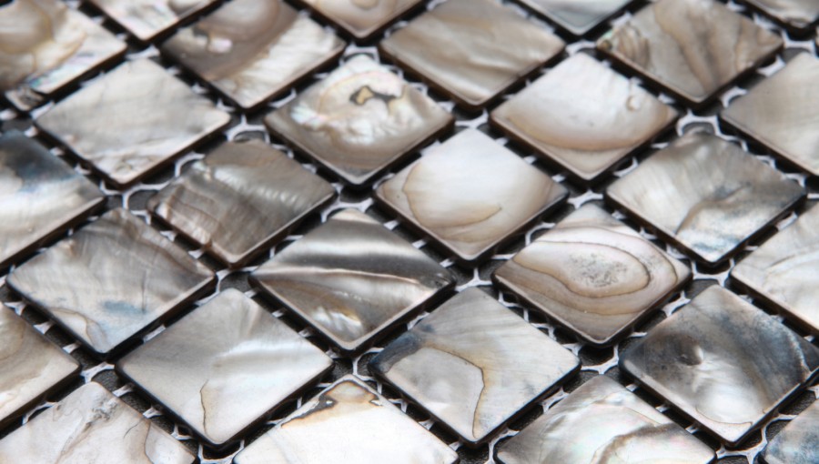 Farmed from freshwater shellfish, these tiles are 100% sustainable. The individual mother of pearl tiles are applied to a mesh sheet, creating a distinctive look, either as a feature with other tiles or for a complete area. As they are a natural product colours may vary.