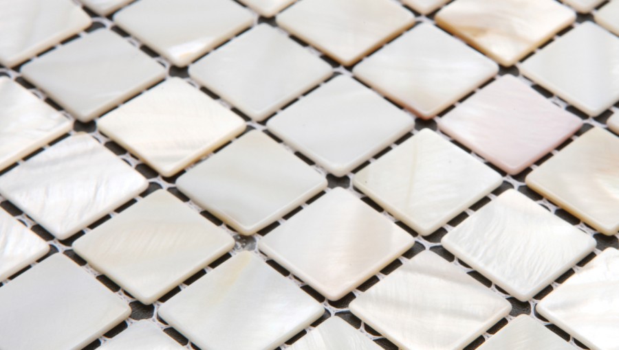 Farmed from freshwater shellfish, these tiles are 100% sustainable. The individual mother of pearl tiles are applied to a mesh sheet, creating a distinctive look, either as a feature with other tiles or for a complete area. As they are a natural product colours may vary.